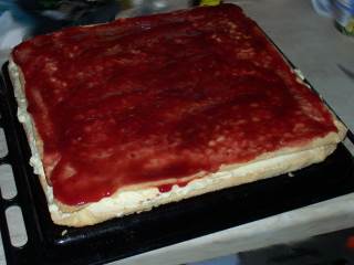 Nun die Torte komplett (also oben und am Rand) ... |