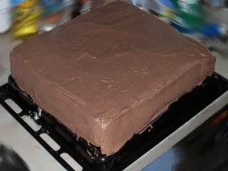 ... mit der gesamten braunen Buttercreme bestreichen. |